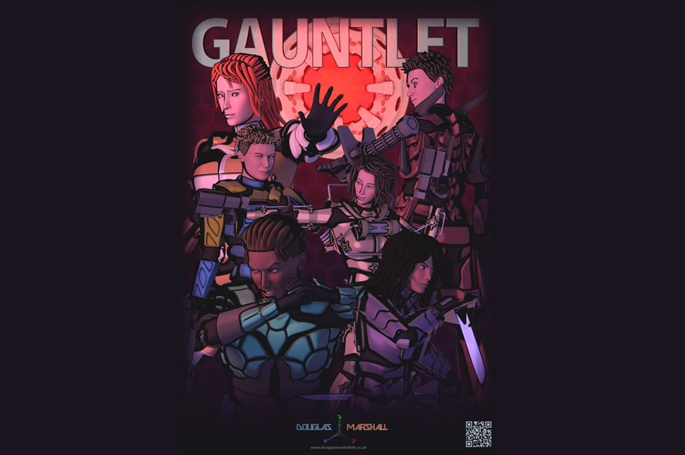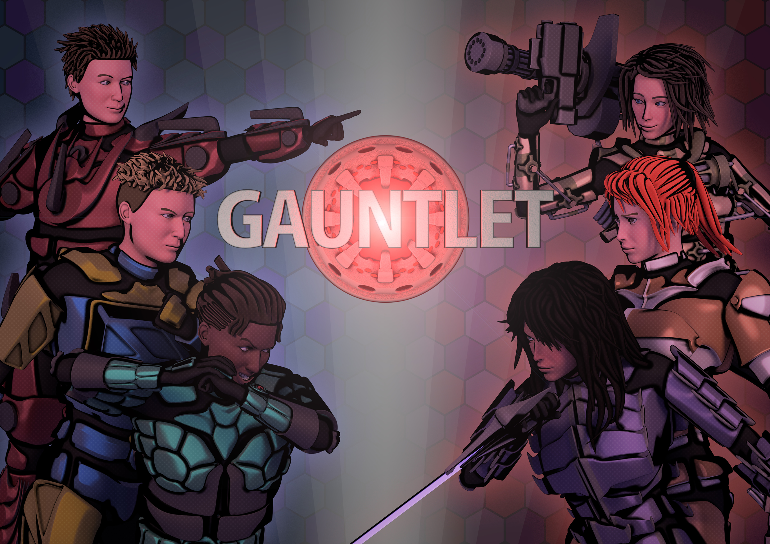 It’s called “Gauntlet” because the main characters wear sci-fi armour that, when in its “standby” mode, is compacted into a single forearm piece (a gauntlet) but when activated, covers their entire body in the armour. Each character has a unique ability/super power called a “Talent”.