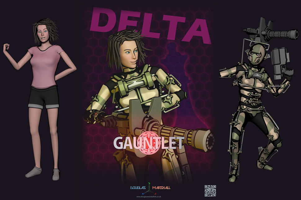 Since Delta doesn’t have a Talent, I designed her Gauntlet in a way that took the basic Gauntlet design and added equipment on top of it, as if Delta was making modifications to the basic Gauntlet that she was given.